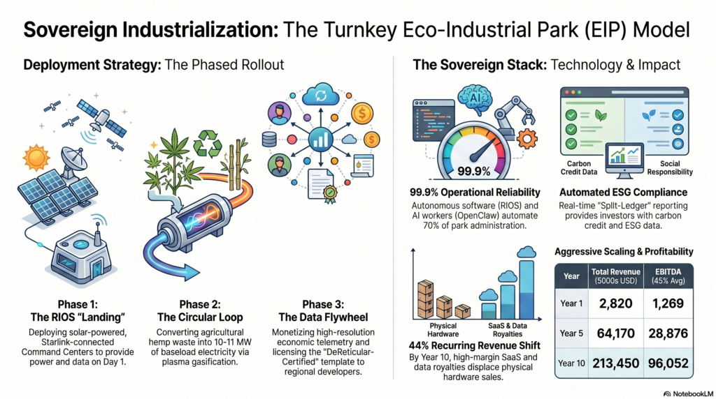 DeReticular EIP Solutions (DES), a company dedicated to deploying autonomous, circular Eco-Industrial Parks (EIPs) across the Global South. These documents detail the launch of the Project Umoja flagship in Kaabong, Uganda, which integrates hemp cultivation with plasma gasification technology to create a self-sustaining energy and industrial hub. Central to this mission is the RIOS operating system, a digital infrastructure that automates regulatory compliance, monitors environmental data, and manages decentralized power grids. A comparative analysis further illustrates how these initiatives align with international green standards while emphasizing digital sovereignty and “Humanitarian Aid as a Service.” By transforming agricultural waste into baseload power, the model seeks to de-risk investment in emerging markets and establish resilient, sovereign industrial templates. Ultimately, the sources present a blueprint for a new industrial revolution that replaces fragile, centralized systems with localized, high-tech circular economies.